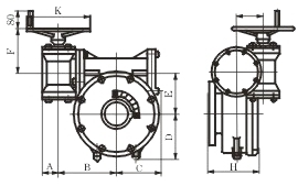 Overall Dimensions & Weight of double-stage wormgear actuator